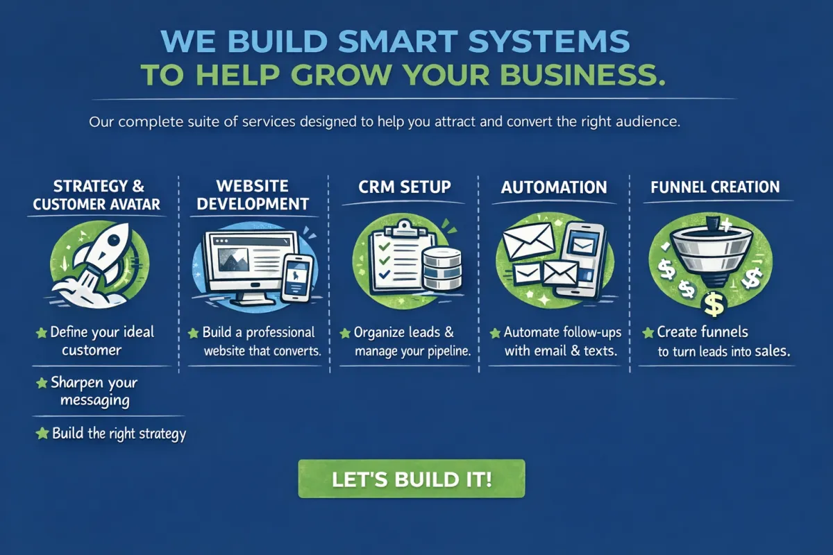 We help entrepreneurs build the systems that support growth inside GoHighLevel / Captivation Hub. From strategy and ideal customer positioning to websites, CRM, automation, and funnels, we create connected tools that help you attract leads, stay organized, improve follow-up, and convert more business.
